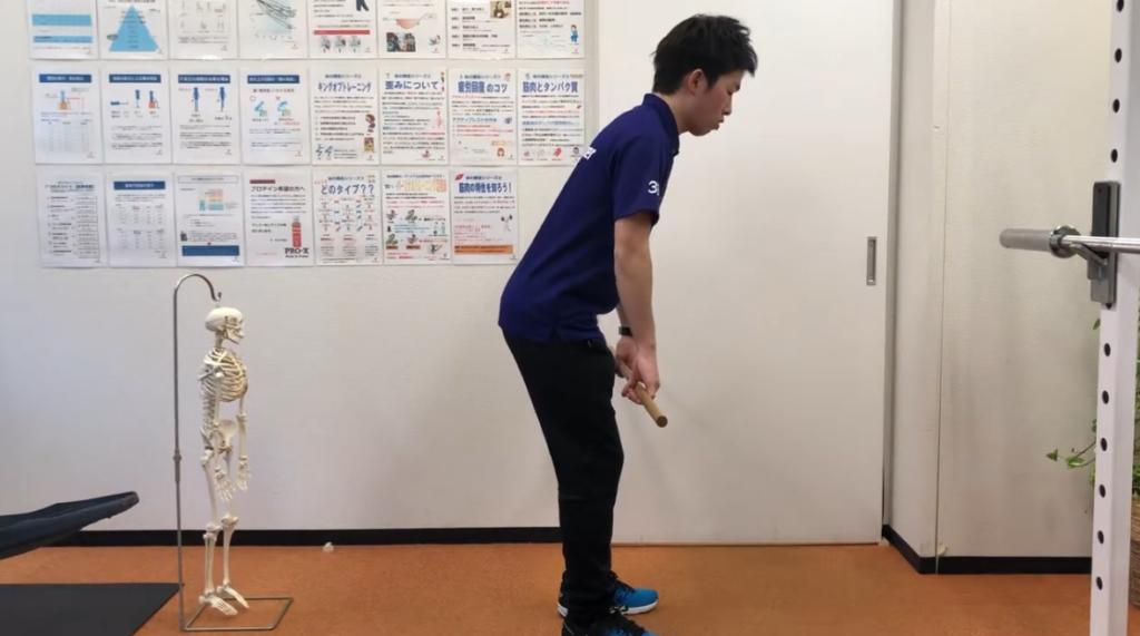 ポイント: この時の「背骨の形」を、動作中ずっと崩さないことが大切です。