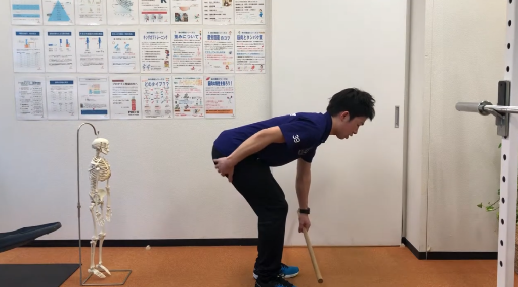 これは重いものを持つ筋トレというより、「股関節を積極的に使い、背骨は自然に使われる」という正しい体の使い方を思い出すための動作を身に付けるエクササイズと言えます。