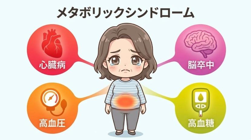 すると内臓脂肪が分泌する物質の働きにより、血栓ができやすくなり、心臓病や脳卒中、その他動脈硬化性疾患(大動脈瘤など)のリスクが高まりますので、注意が必要です。