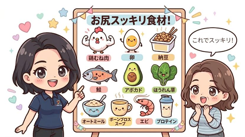 これらの食材を日常的に取り入れることで、効率よく脂肪を減らし、引き締まったお尻を目指せます。運動や姿勢改善と併用することで、より理想的な体型を手に入れることができるでしょう。