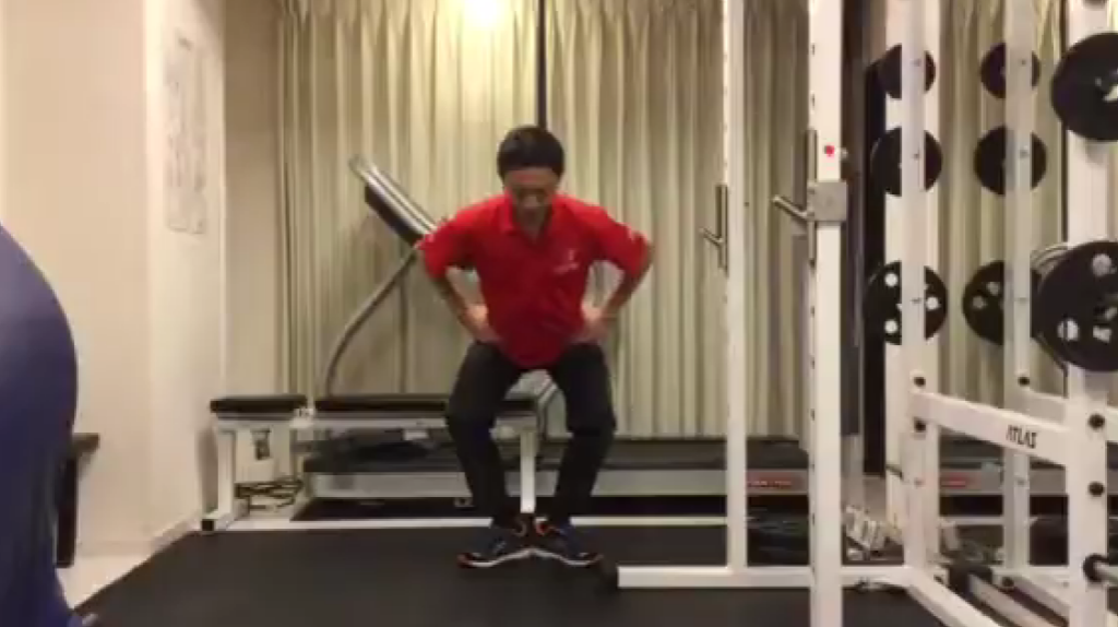 その動作は「スクワット」で改善していくことをお勧めします。スクワットでしゃがむ際に、膝を内側に入れずにしっかり外側に開いてしゃがむようにしましょう。