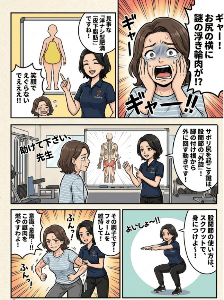 追い打ち漫画でわかる!お尻の横の肉をスッキリさせる筋トレ
